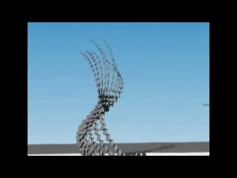 Description: For the Interstate 25/Highway 34 Interchange Project, Rising Field reinterprets steel plow discs as part of an iconic sculpture that unifies Loveland’s agricultural past with its technological present. The plow discs are of various diameters and arranged in arrays, connected by steel pipes, like in a set of harrows. The opposite sides of each plow disc are painted cherry red, celebrating one of Loveland’s most famous agricultural products. This provides a continually changing gradient of color as viewers drive by. In winter, the plow discs can also accumulate snow, recalling the beauty of how snow collects on in the field. The dynamic twisting form, configured using algorithmic software, evokes the city’s thriving technology industry. As the plow discs progress from large diameter to small diameter in a sweeping gesture, the sculpture begins to dramatically lift from the ground in a contrail-like form towards the sky and the city’s future.